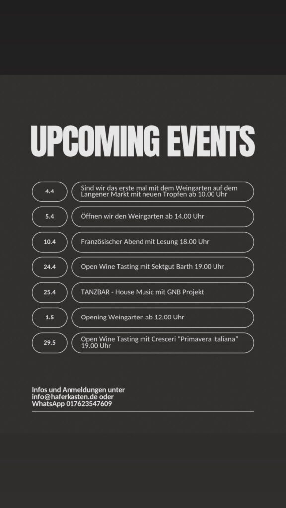Im Haferkasten erwarten dich regelmäßig wechselnde Events und besondere Veranstaltungen.